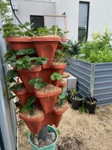 Starting from just $45, our free standing stacking planter kits are unique. With 4 clovers and a center pole for added stability, choose between 3 colour options, 2 sizes and 3 planter sets including planters only, planters with trolleys, planters with trolley/growing medium/nutrient, raised strawberry towers and hanging vertical planters