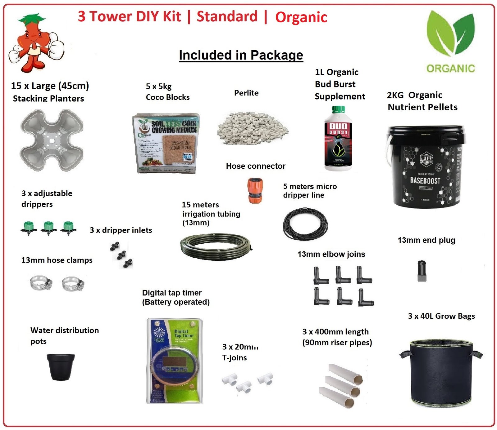 Mr Stacky 3 tower organic water mains vertical gardening system australia