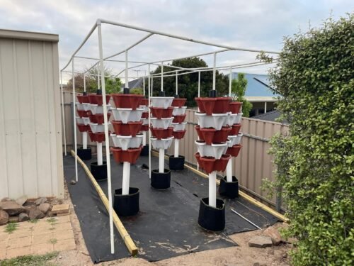 Our 9 tower setup has been pumping out the veggies. We’ve kept half our street stocked with tomatoes, lettuce and rocket. For ourselves we’ve also had turnips, beetroot, carrots, herbs and strawberries so far. Our initial setup was experimental to see if the location got enough sun. Once our tomatoes are finished we’ll build a more permanent structure. Would recommend this setup to anyone looking to grow a lot of hydroponic vegetables.